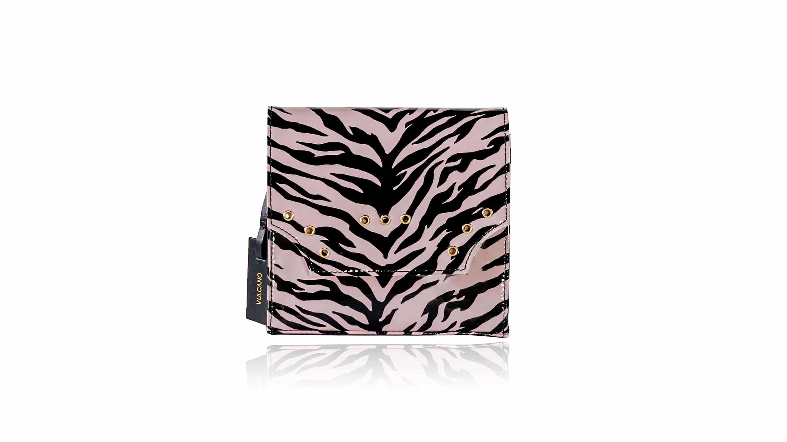 Realizzata in pelle stampata in vernice zebrata.